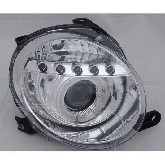 FIAT 500 2007+ FARI ANTERIORI CROMATI LENTICOLARI ANGEL EYES BIANCHI