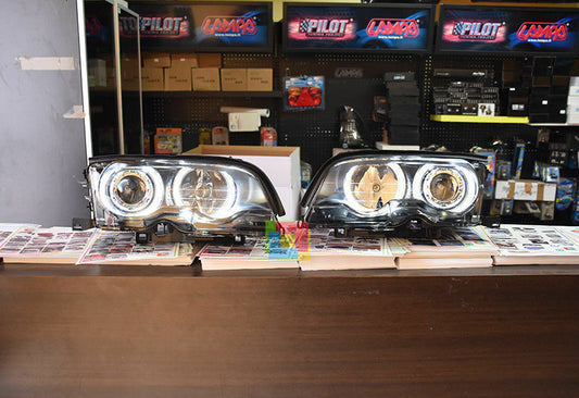 FARI ANTERIORI BMW SERIE 3 E46 2003-2006 COUPE CABRIO ANGEL EYES LED