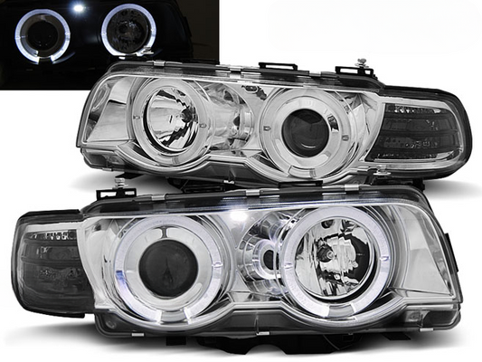 FARI ANTERIORI ANGEL EYES CCFL CROMATI ADATTI per BMW E36 12.90-08.99 S/C/T