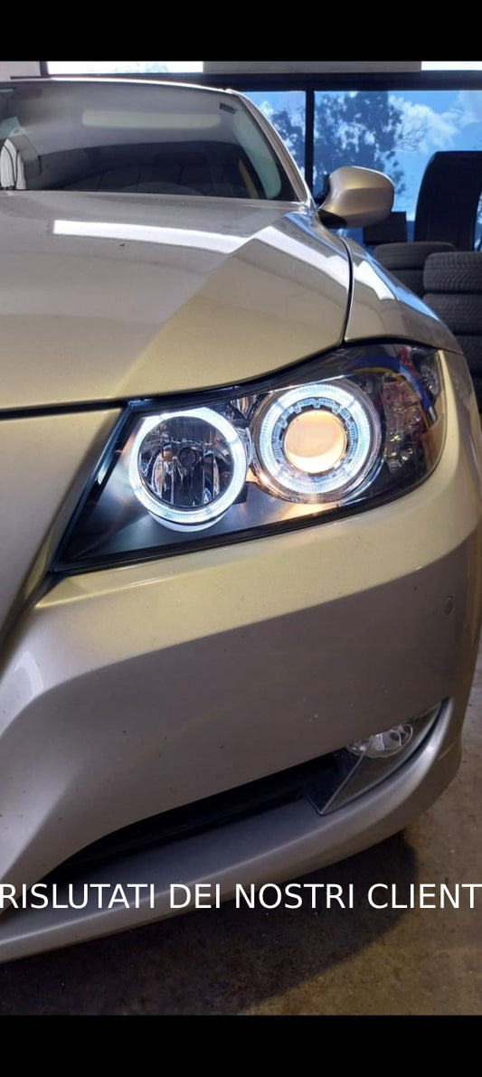 FARI ANTERIORI ADATTI PER BMW 3 E90 E91 2005-2012 NERI ANGEL EYES freccia led