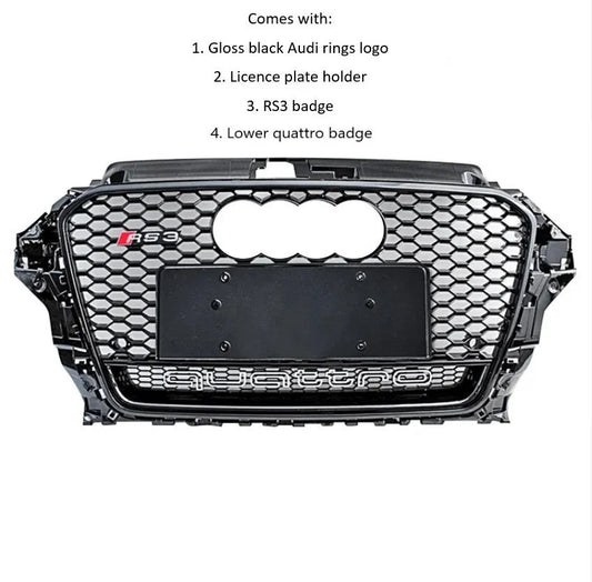 ✨Griglia anteriore NERA LUCIDA ADATTA PER Audi RS3 Style A3 S3 8V 13-16✨