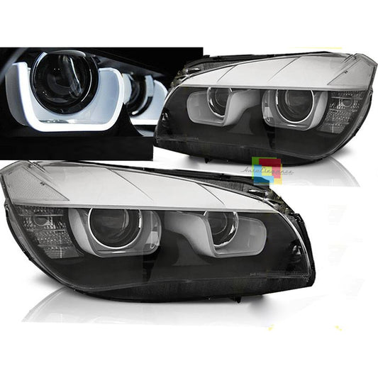 BMW X1 E84 BLACK HEADLIGHTS ANGEL EYES LED LENTICULAR H7 / H7
