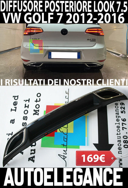 VW GOLF 7 FROM 2012-2016 REAR DIFFUSER UNDER BUMPER LOOK 7.5 PLASTIC ABS