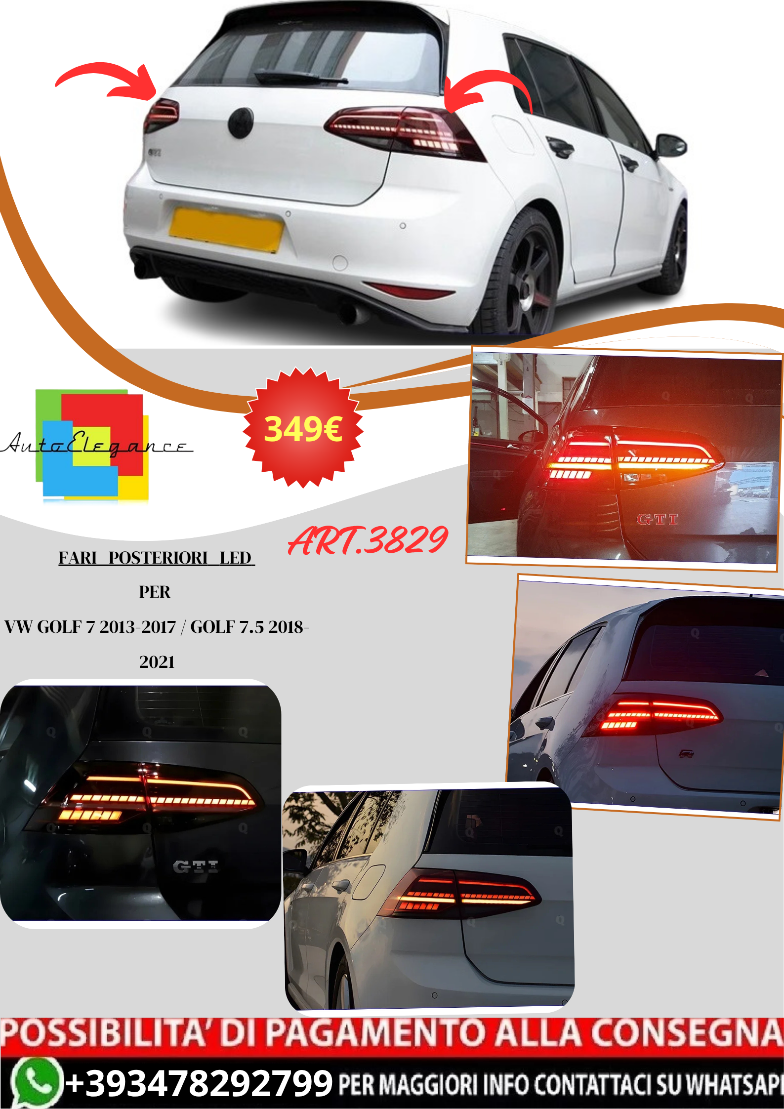 💫ART.3829 Fari Posteriori LED (dinamici) Per VW Golf 7 13-17 Golf 7.5 18-21💫