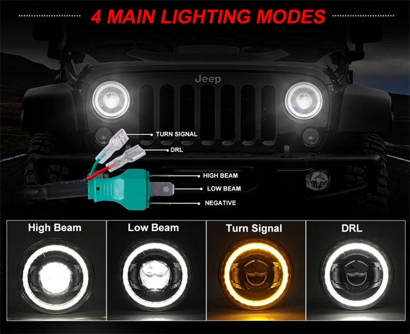💫ART.4873 Fari Anteriori Rotondi LED per Jeep Wrangler / Lada Niva 4X4 💫