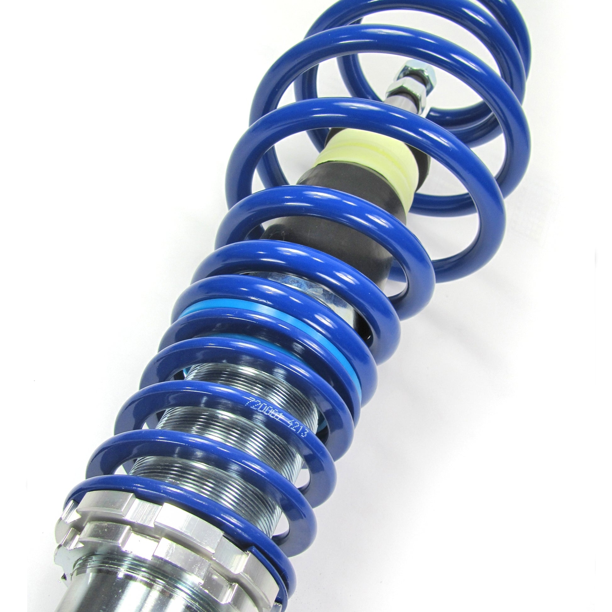 BlueLine coilovers are high-quality, vehicle-specific suspension components for lowering the front and rear axles by 35-55 mm. The inserted adjustment range allows the body height to be individually lowered; the spring preload is maintained over the entire adjustment range. The height adjustment takes place once installed. The chassis has a particularly high transverse force load capacity. Vehicle-specific design variant: VA thread / HA spring.