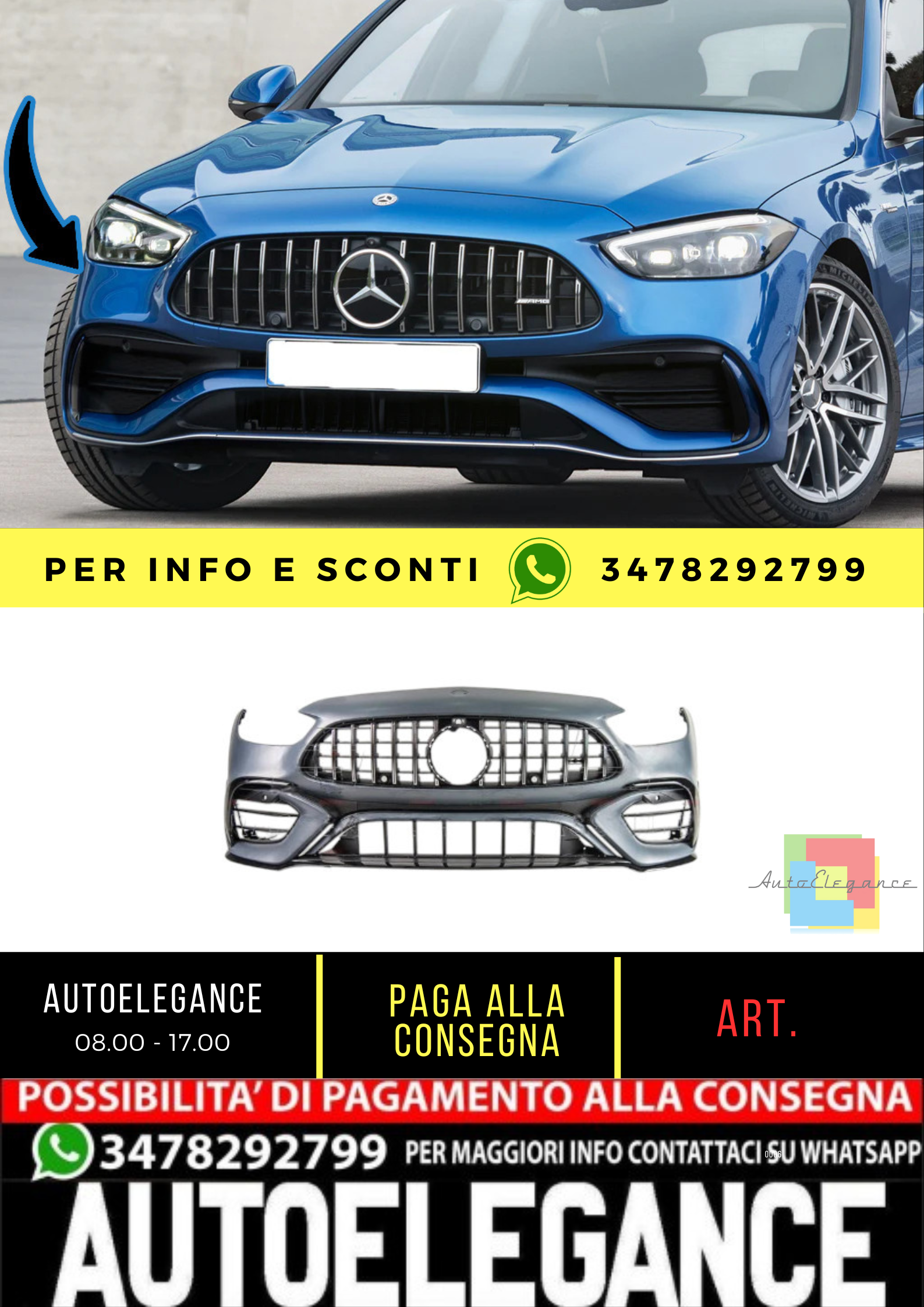 🔥Front bumper C63 AMG Look for Mercedes C-Class (W206) Saloon Station🔥