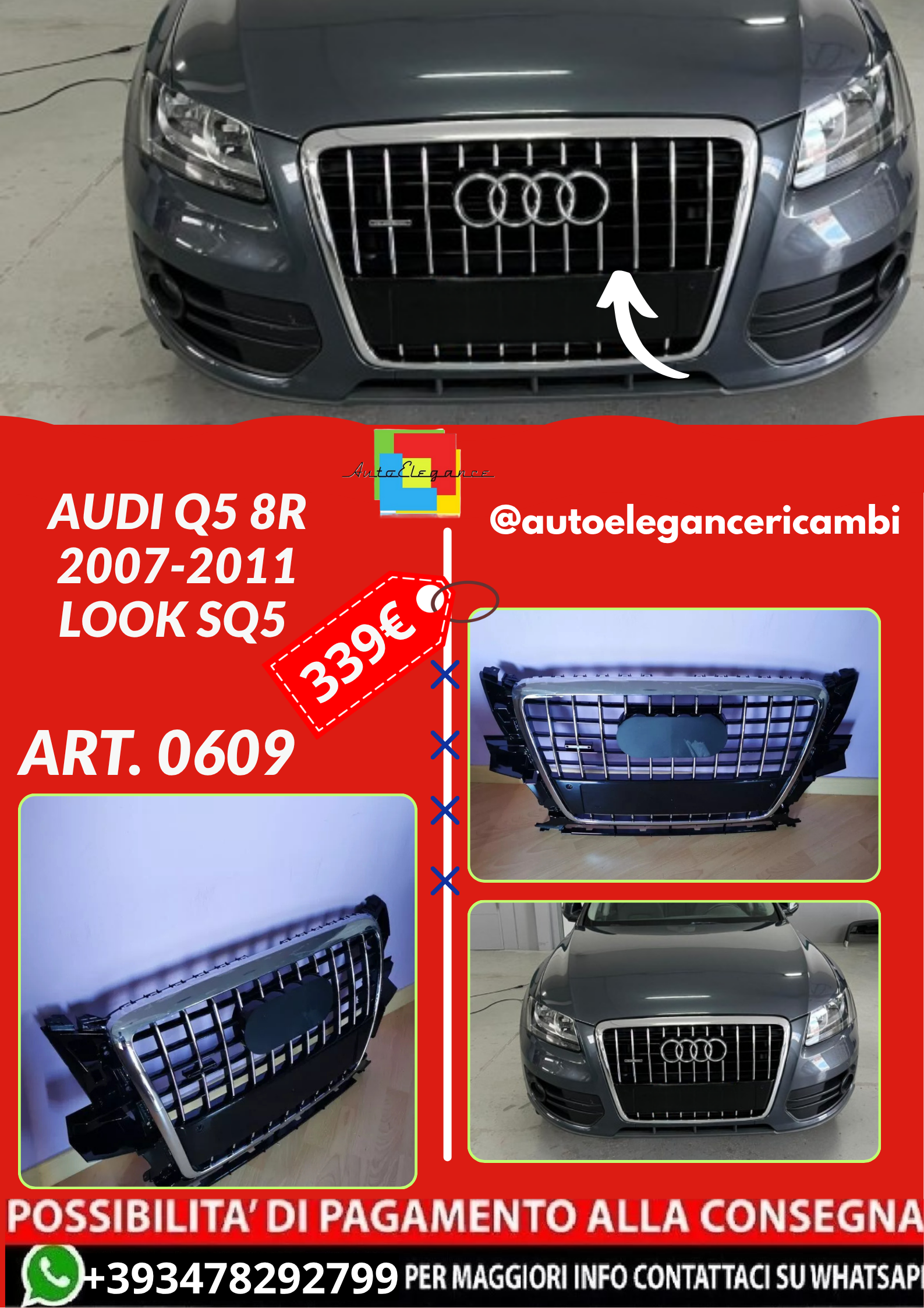 ART. 0609 GRIGLIA AUDI Q5 8R 2007-2011 LOOK SQ5 PROFILI CROMATI