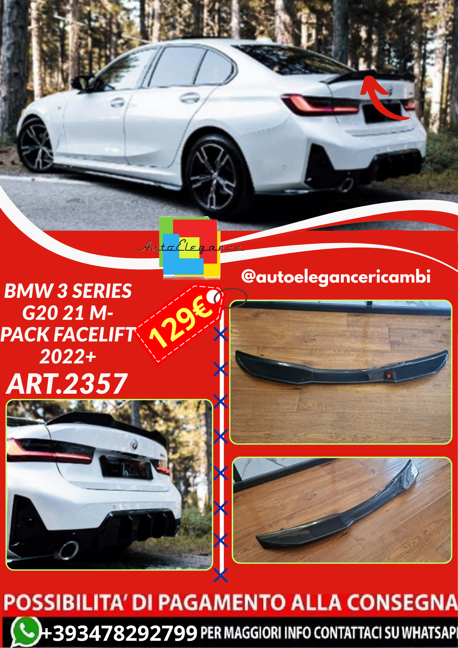 ART.2357 SPOILER BMW 3 SERIES G20 21 M-PACK FACELIFT 2022+