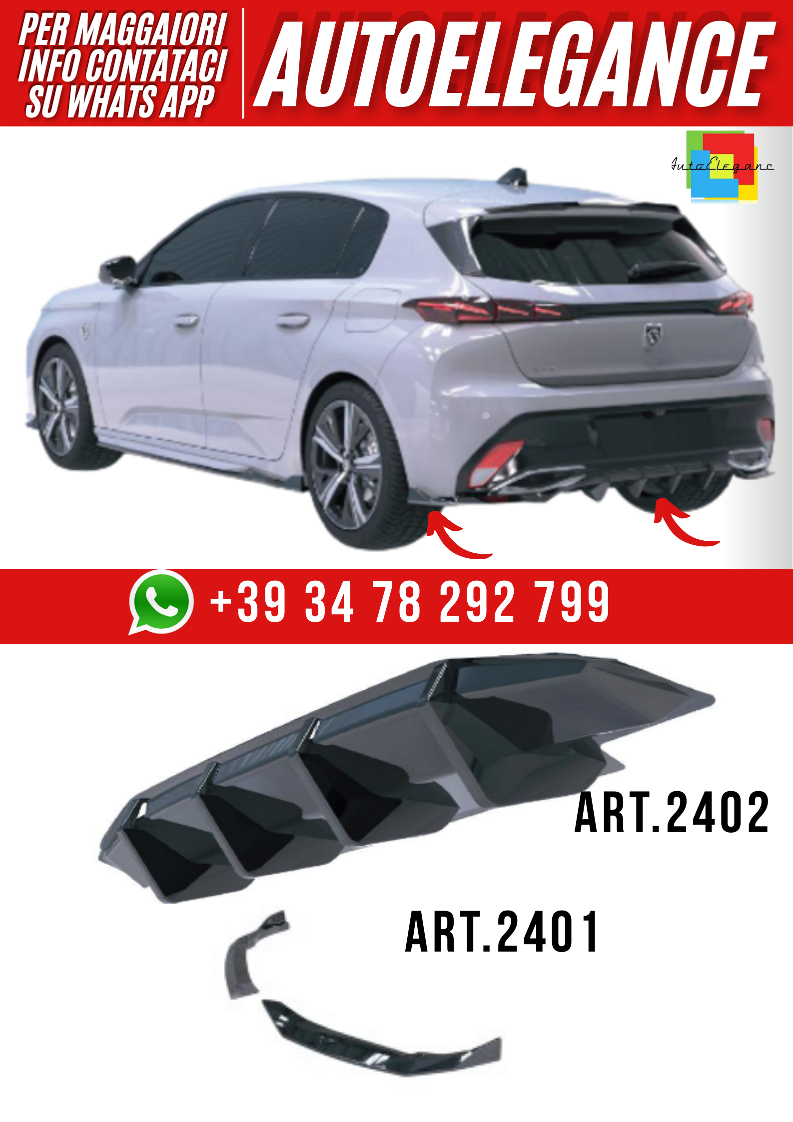 ART.2402 DIFFUSORE + ART.2401 FLAPS PEUGEOT 308 GT HATCHBACK MK3 2021+