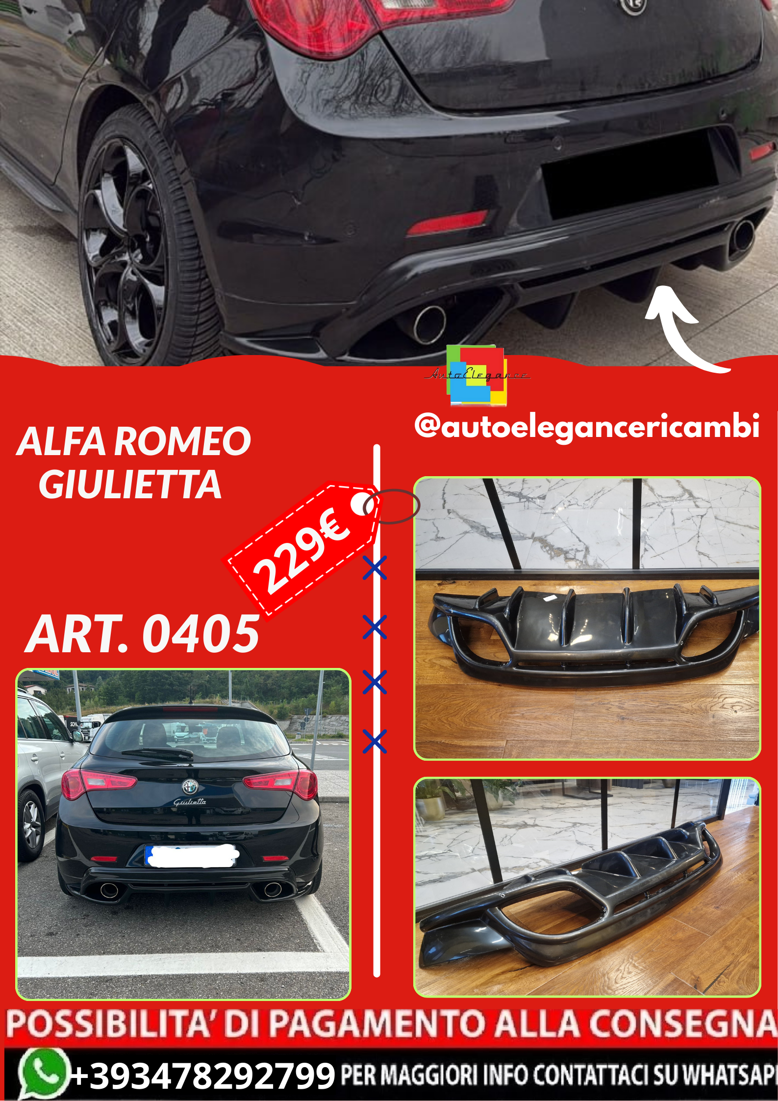 ART. 0405 DIFFUSORE ALFA ROMEO GIULIETTA LOOK QUADRIFOGLIO NERO LUCIDO
