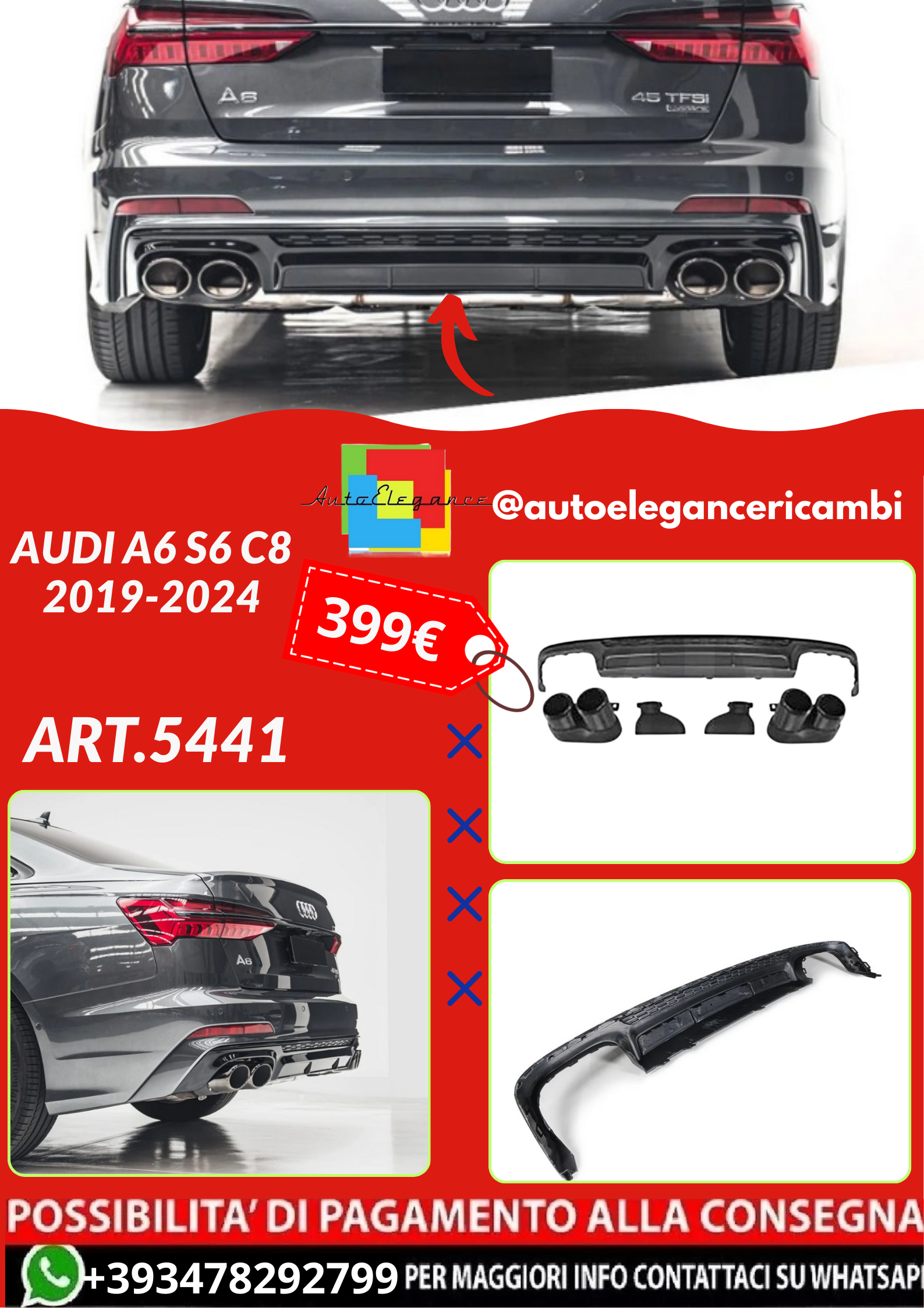 ART.5441 DIFFUSORI +TERMINALI AUDI A6 S6 C8 2019-2024