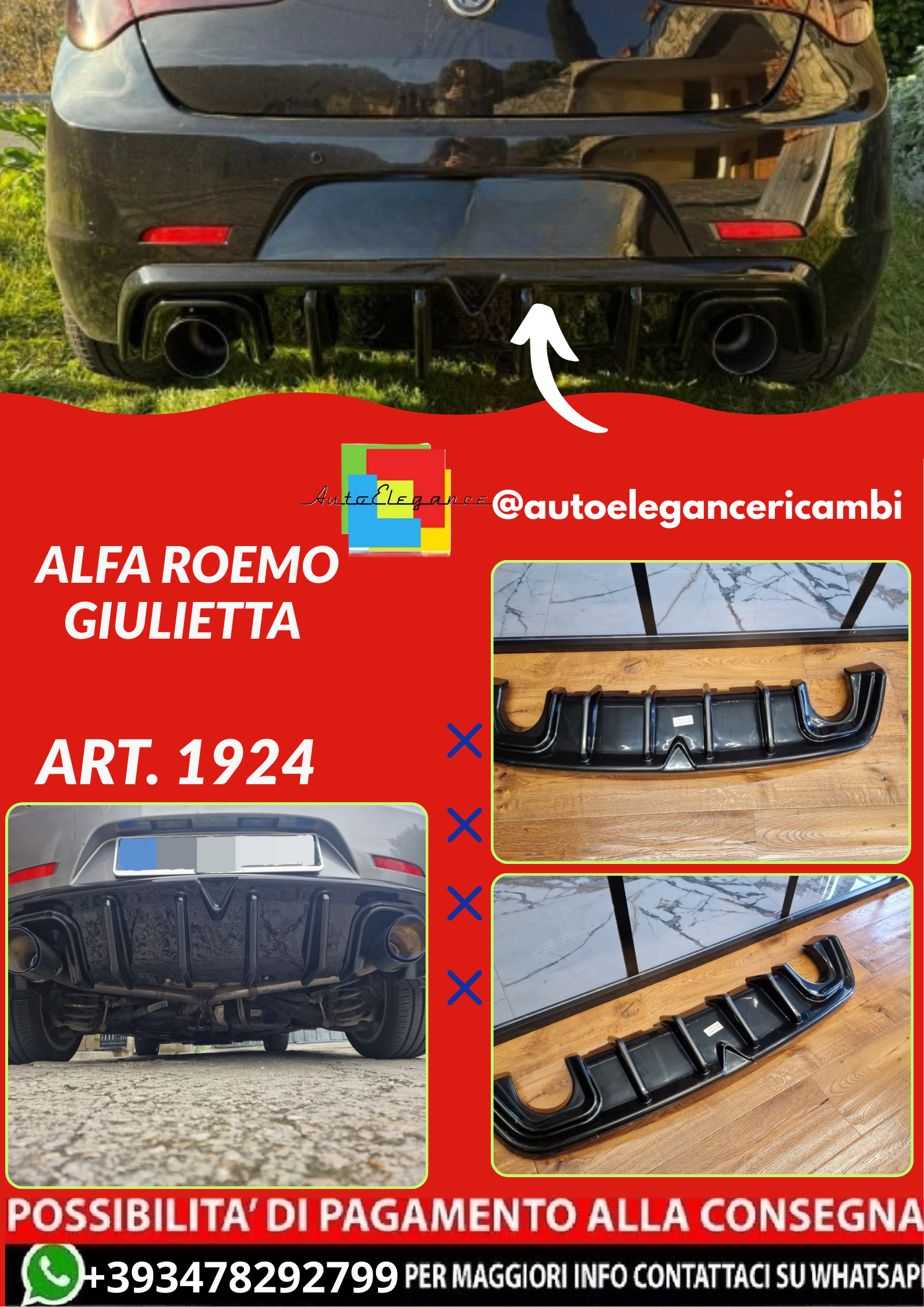 ART. 1924 DIFFUSORE ALFA ROEMO GIULIETTA NERO LUCIDO LOOK TUNING