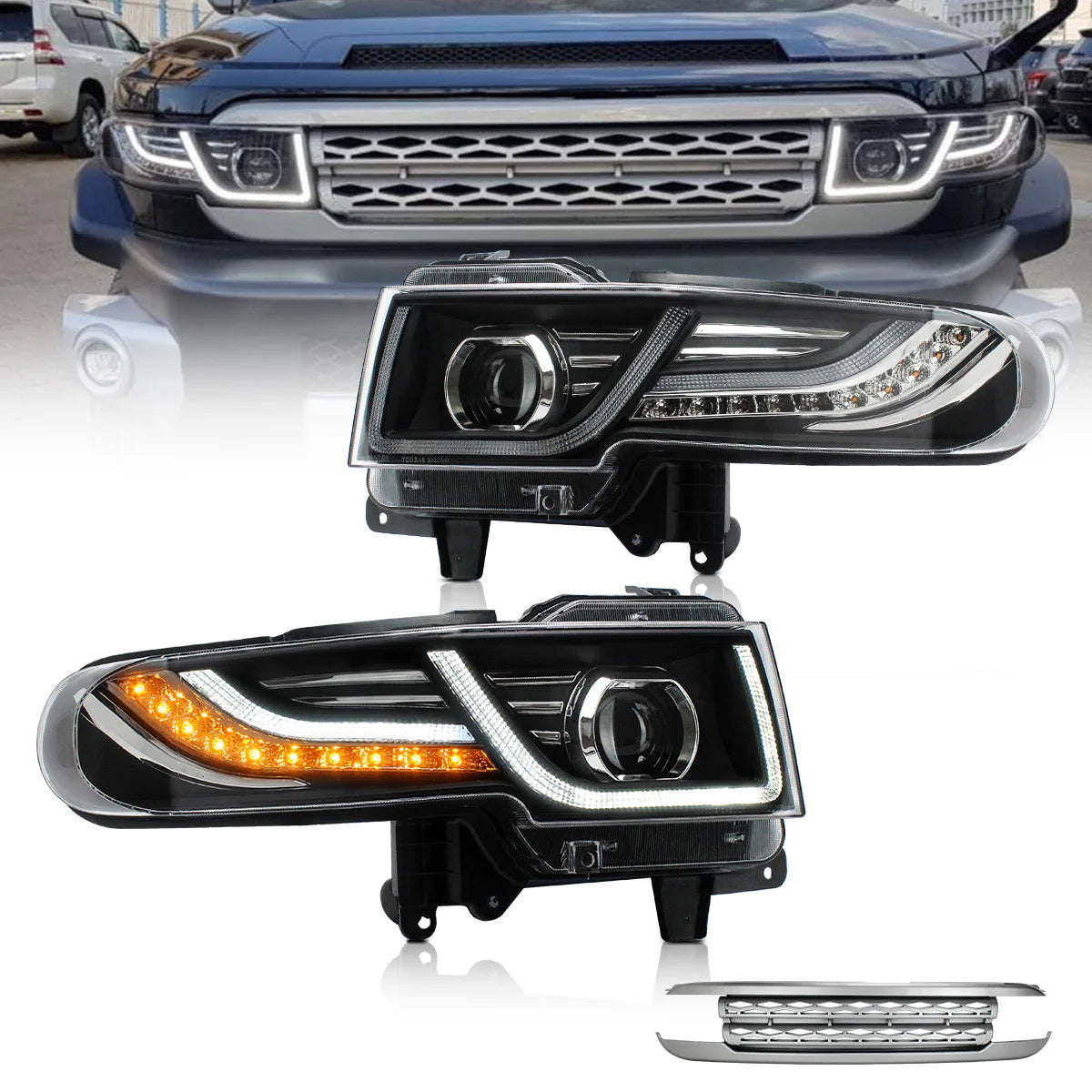 LED Headlights + 2x D2H Xenon Bulbs Suitable for Toyota FJ Cruiser 1st Generation 2007-2015