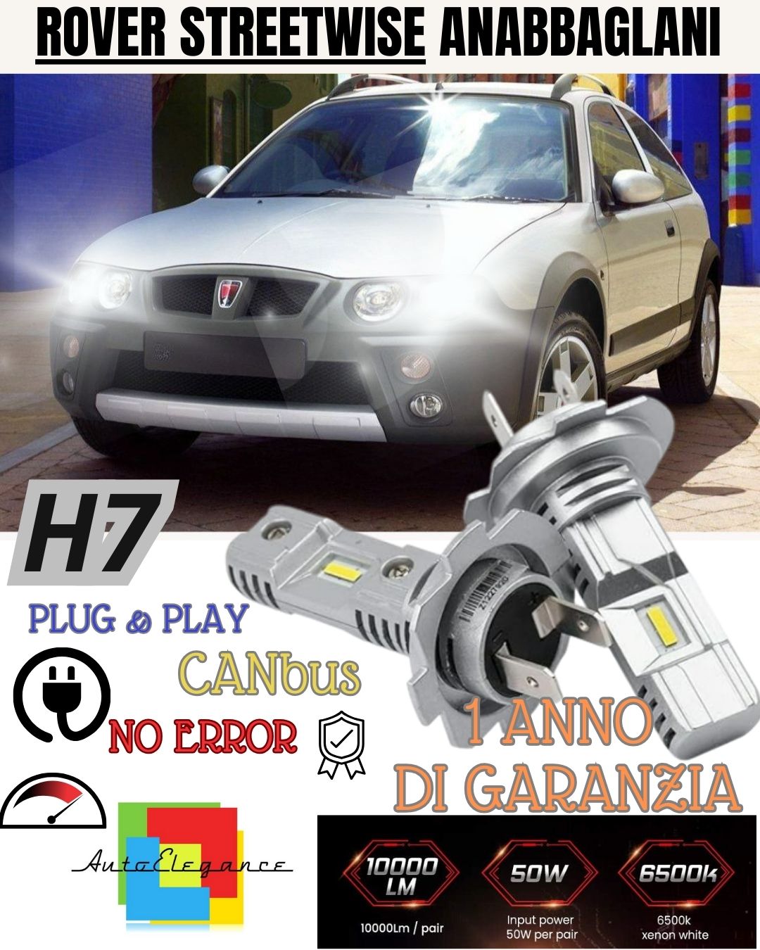 H7 LED KIT FOR ROVER STREETWISE 6000K WHITE 6000 LUMEN CANBUS LOW BEAM