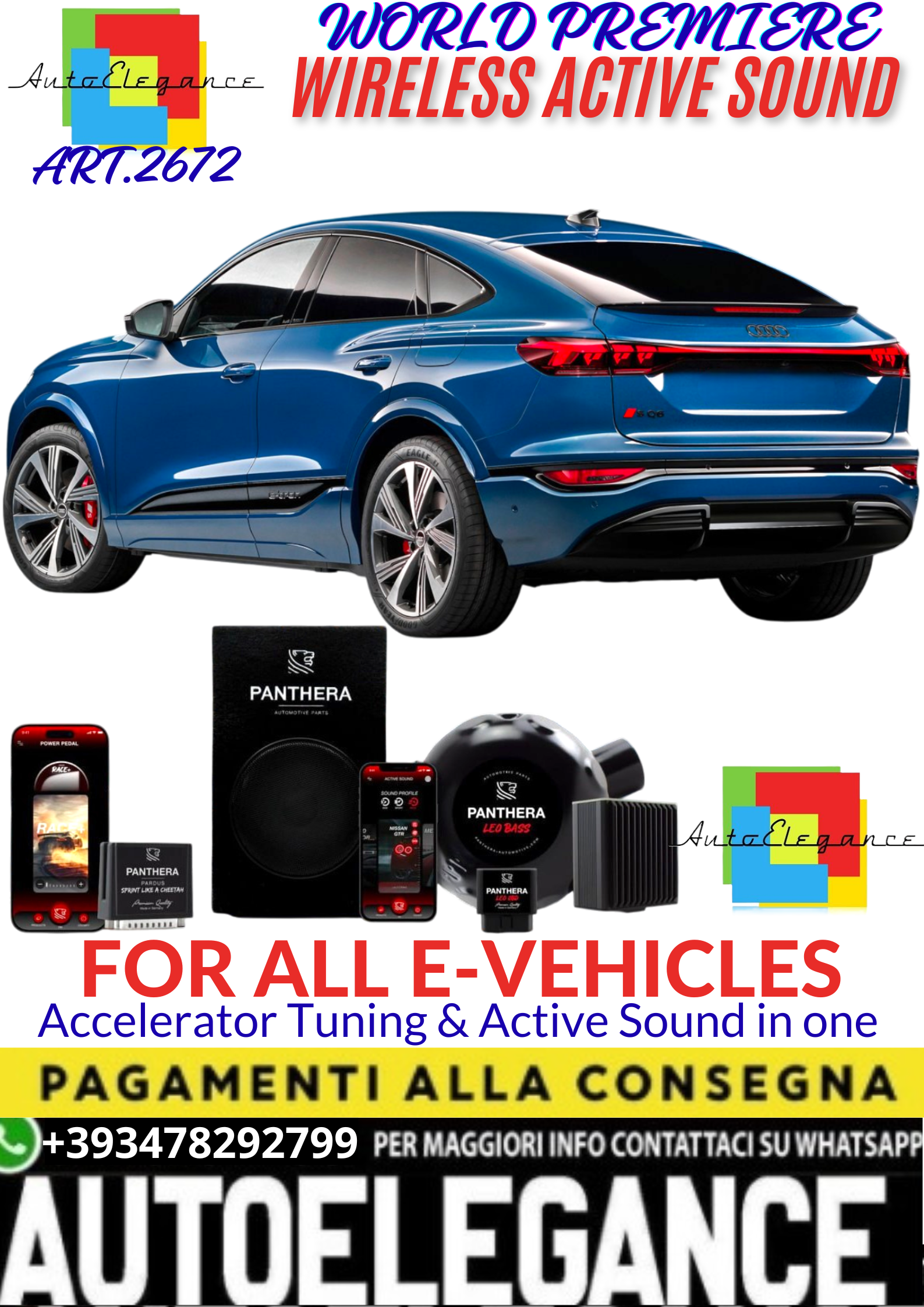 💥💣 ART.2672 PANTHERA WIRELESS ACTIVE SOUND SYSTEM ADATTO PER AUDI Q6 E-TRON EV💣💥