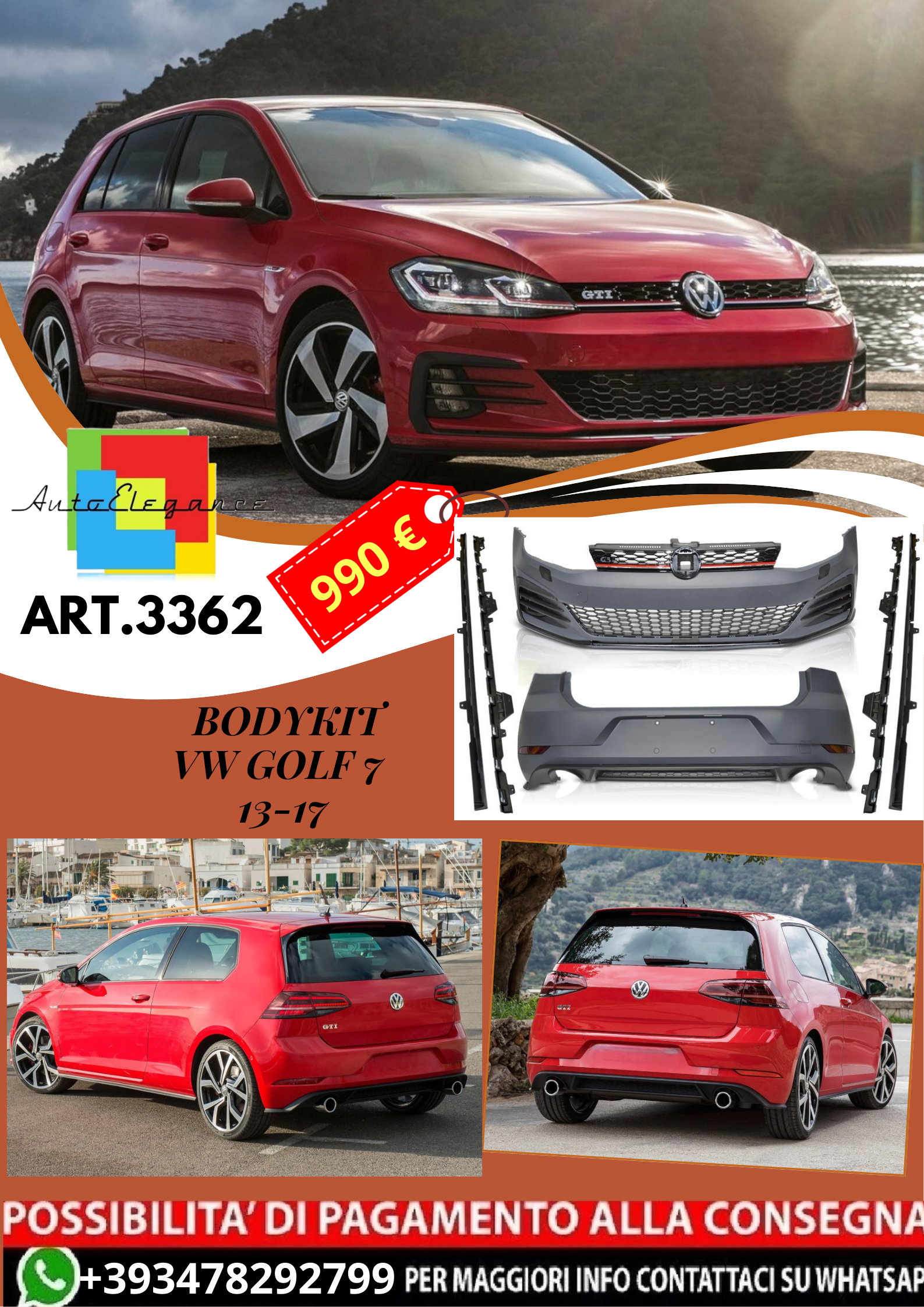 💥ART.3362 BODYKIT SPORT STILE PERFORMANCE adatto per VW GOLF 7 13-17💥