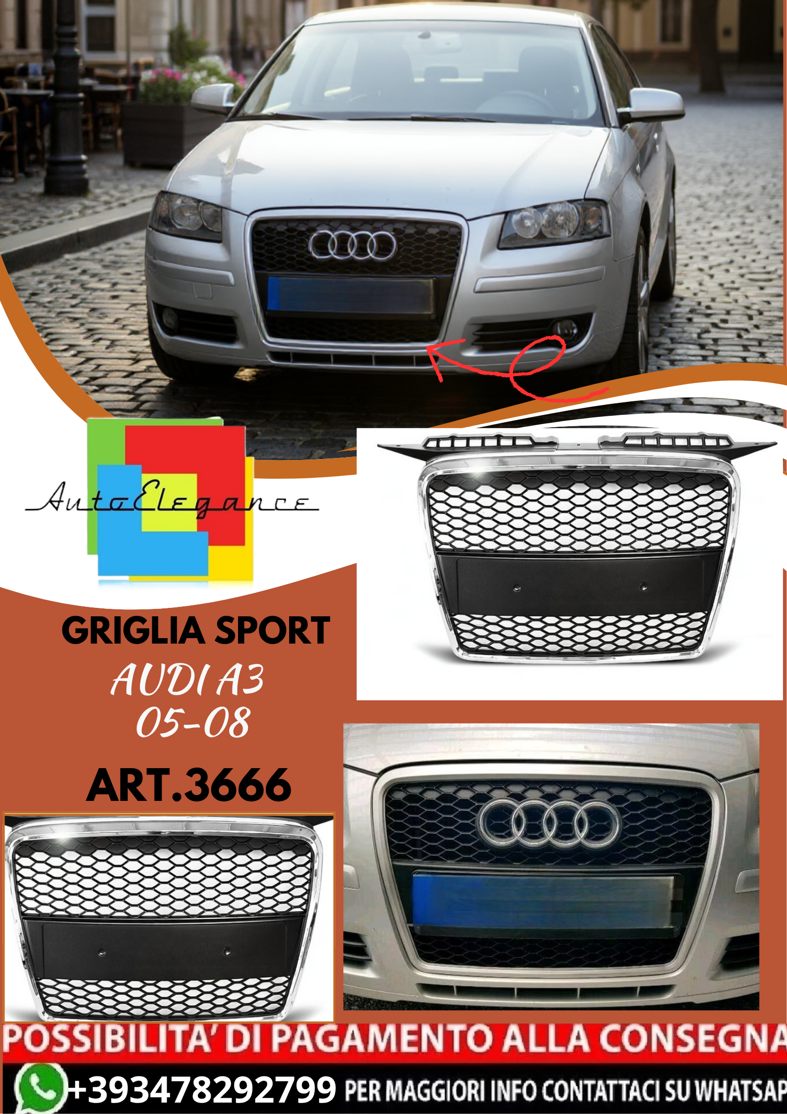 💥ART.3666 GRIGLIA SPORT adatto per AUDI A3 05-08💥