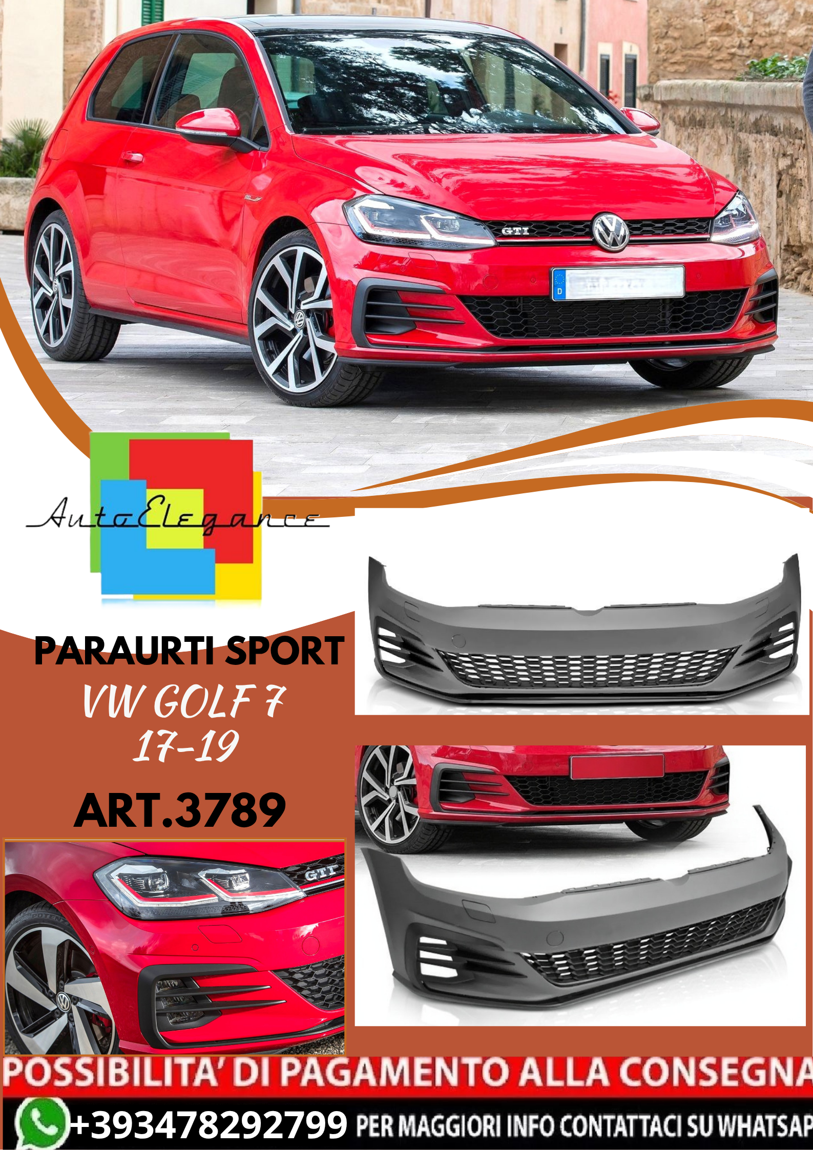 💥ART.3789 PARAURTI ANTERIORE SPORT adato per VW GOLF 7 17-19 LOOK GTI💥