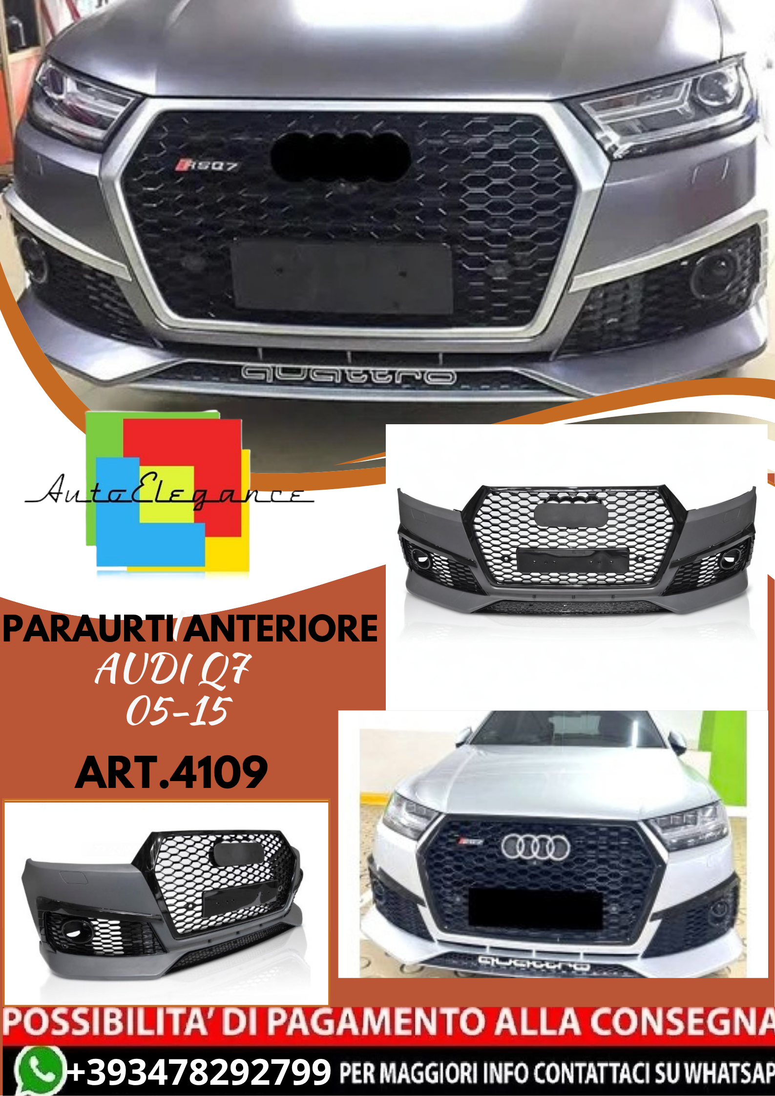 💥ART.4110 Paraurti Anteriore adatto per AUDI Q7 15-19 LOOK RS LINE💥
