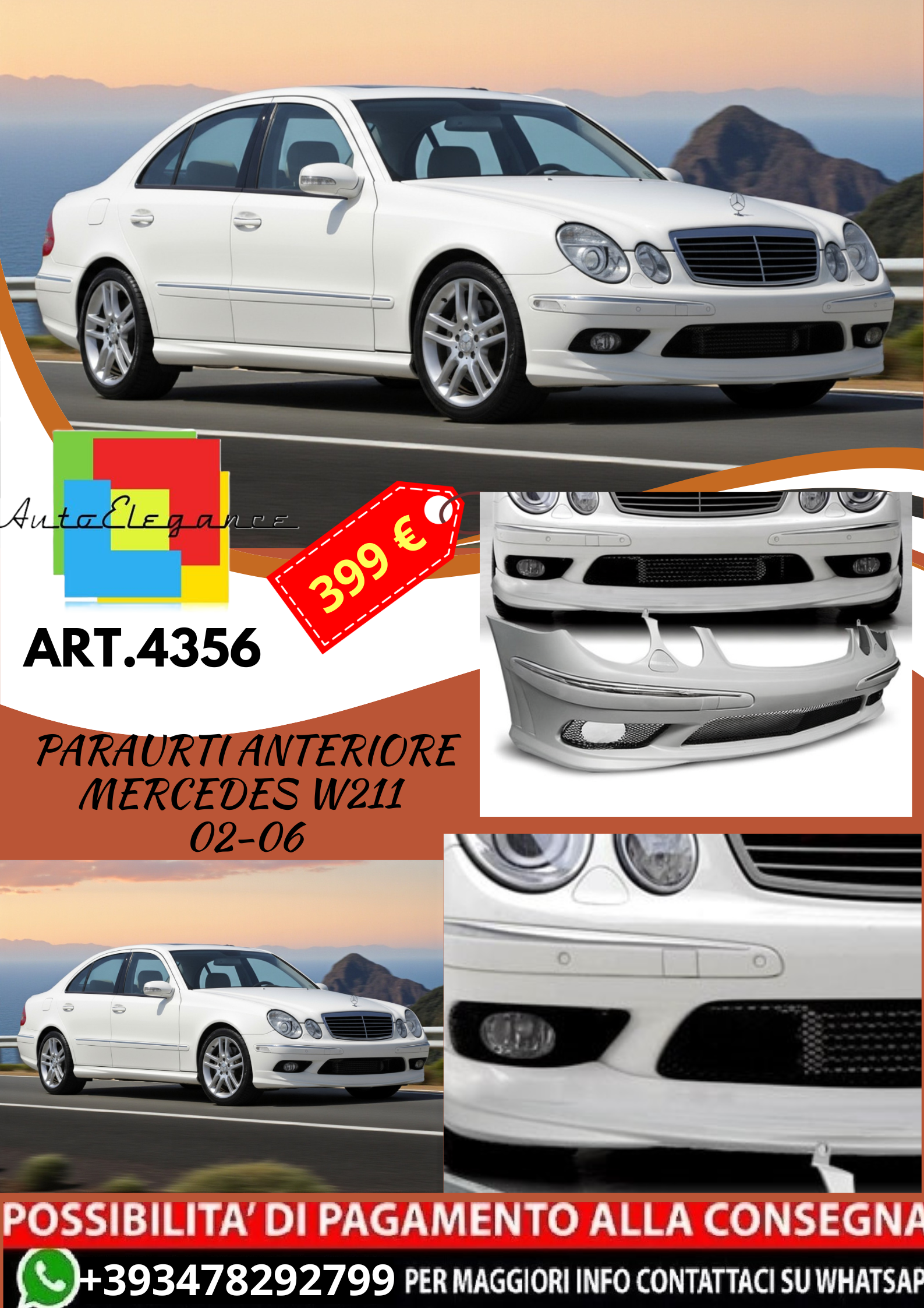 💥ART.4356 Paraurti Anteriore adatto per MERCEDES W211 02-06 LOOK AMG💥