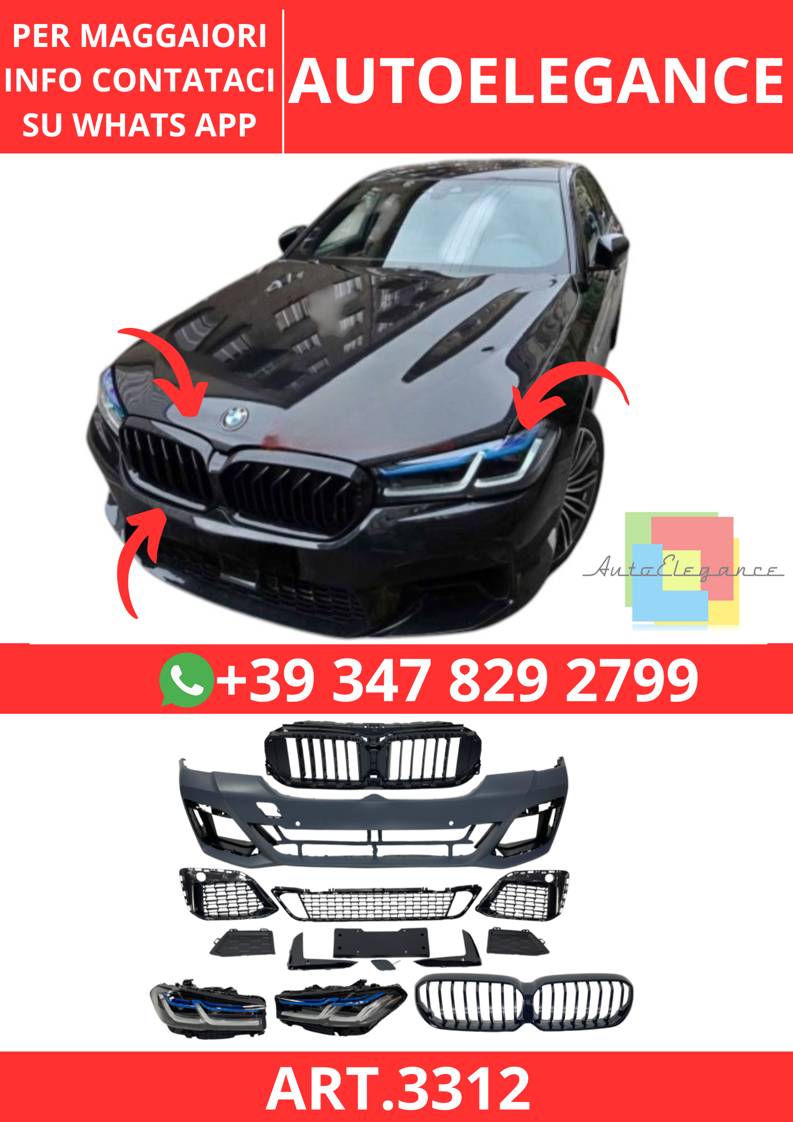 💫ART.3312 Paraurti + Fari Anteriori BMW G30 / G31 2017-2019 Look LCI M-Tech💫
