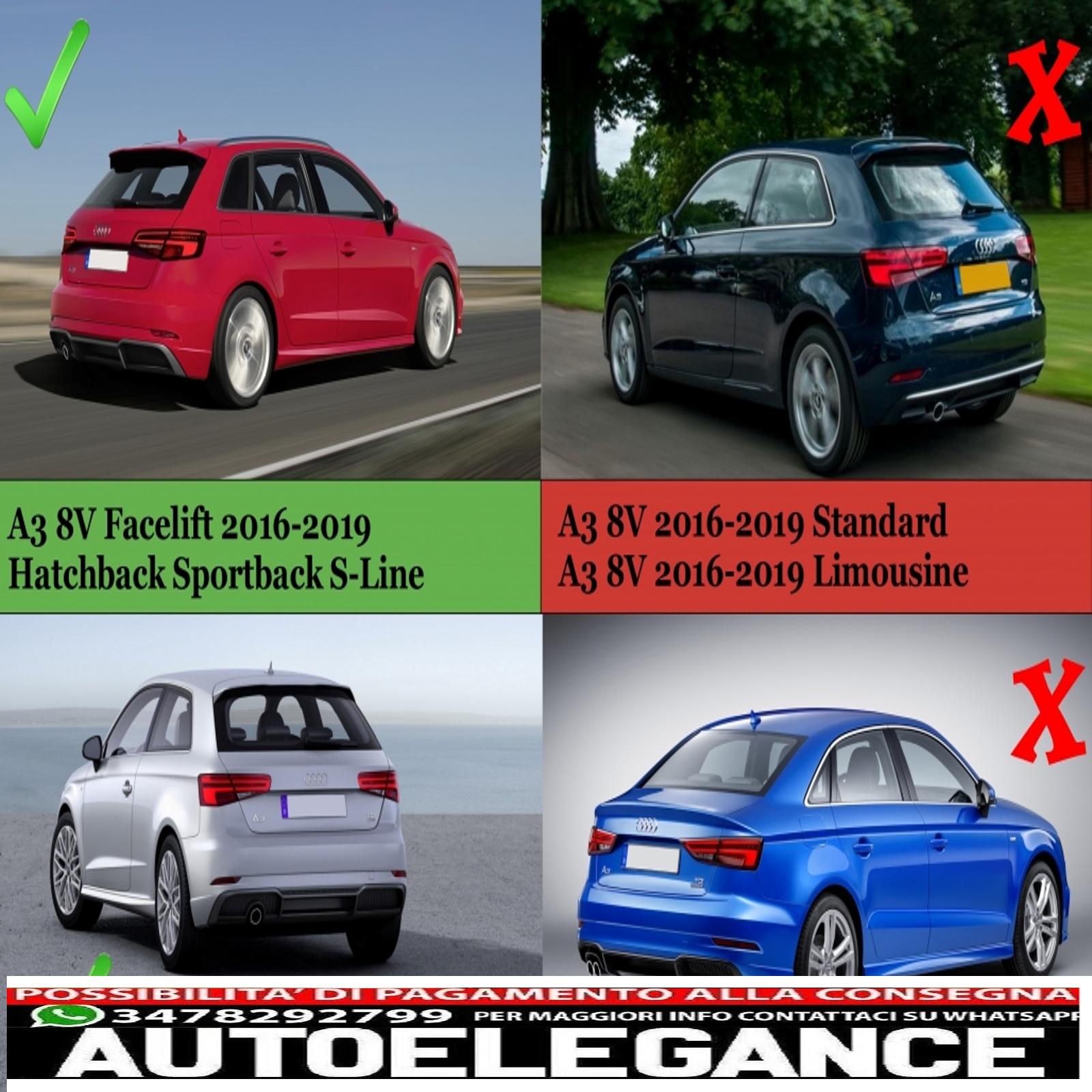 Diffusore mantovana paraurti posteriore adatto per audi a3 8v facelift (2016-2019) paraurti s-line hatchback sportback s3 design