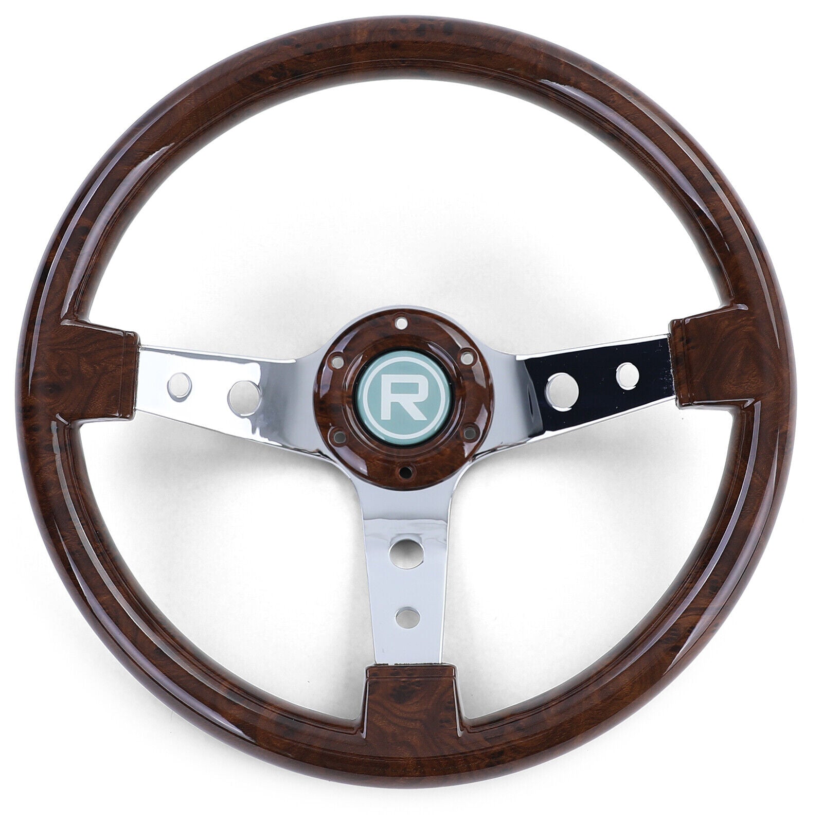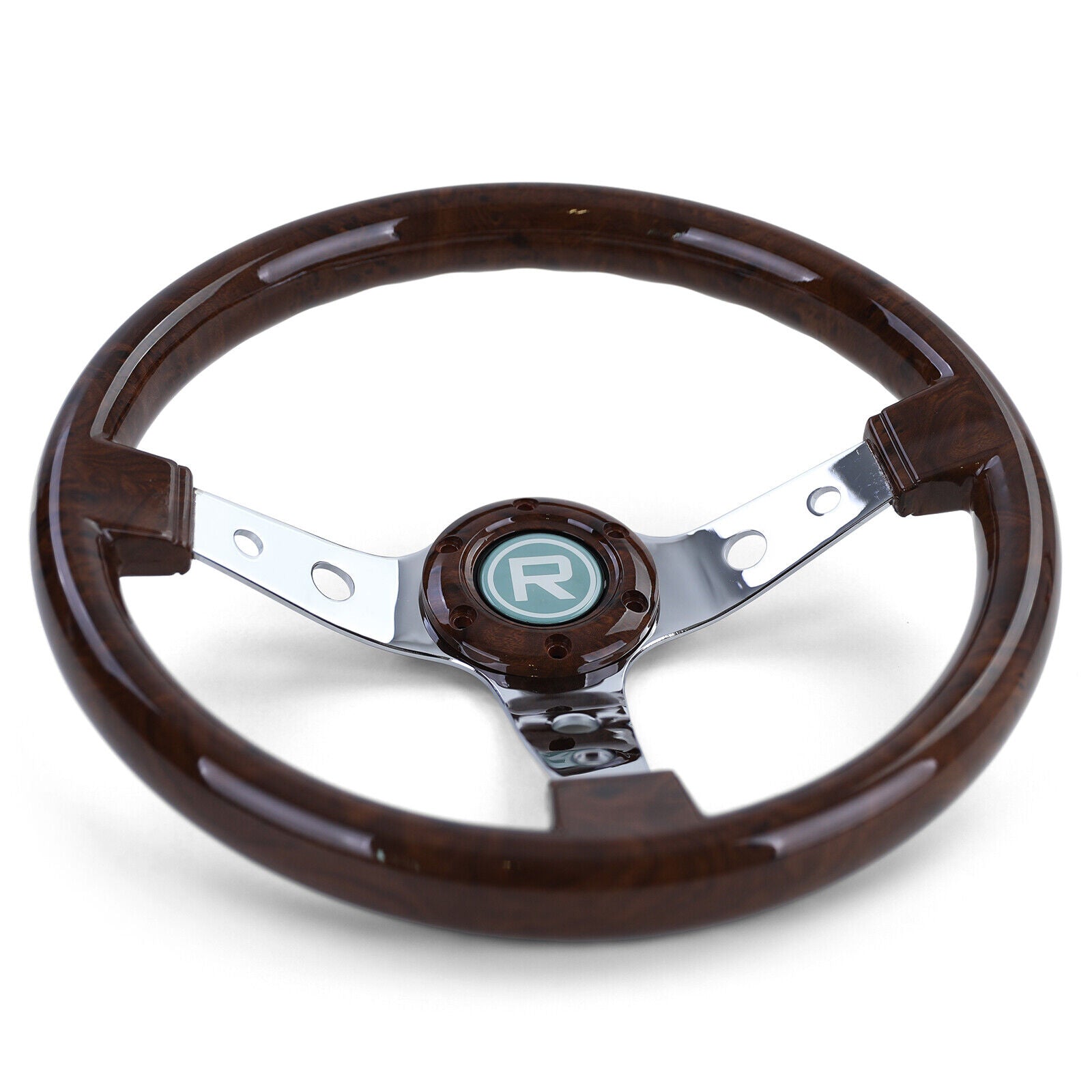 Esclusivo volante sportivo effetto legno con razze cromate da 350mm per Momo Sparco