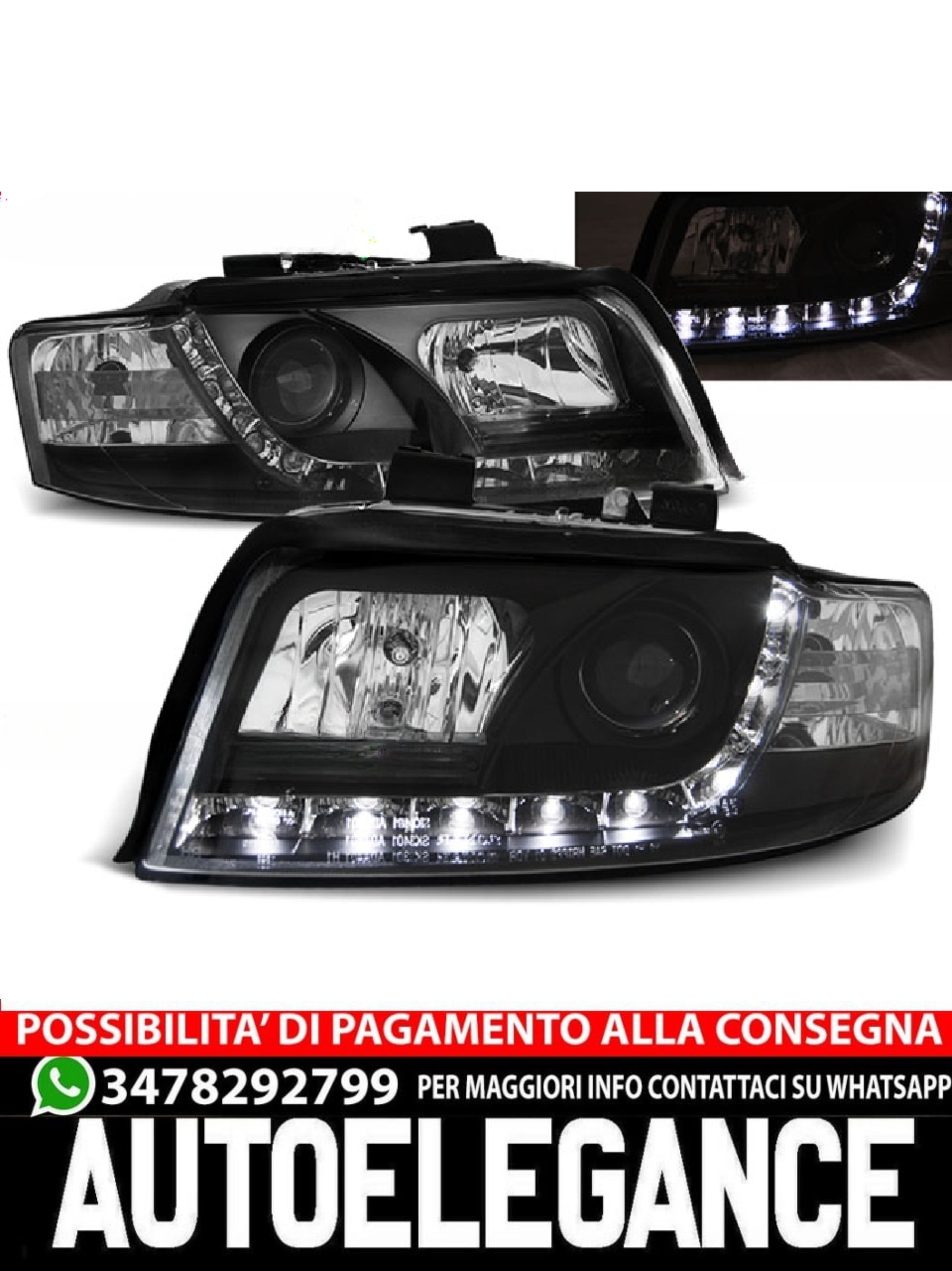 FARI ANTERIORI DAYLIGHT NERO ADATTI COMPATIBILI PER AUDI A4 10.00-10.04