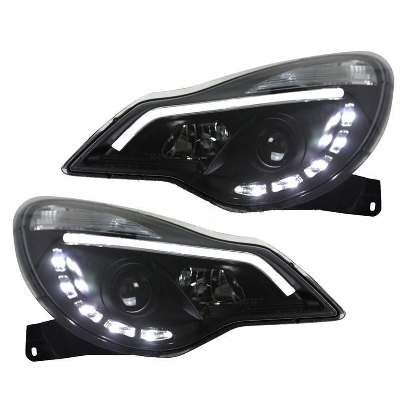 OPEL CORSA D 2011-2015 RESTYLING FARI ANTERIORI DIURNE LED FANALI NERI