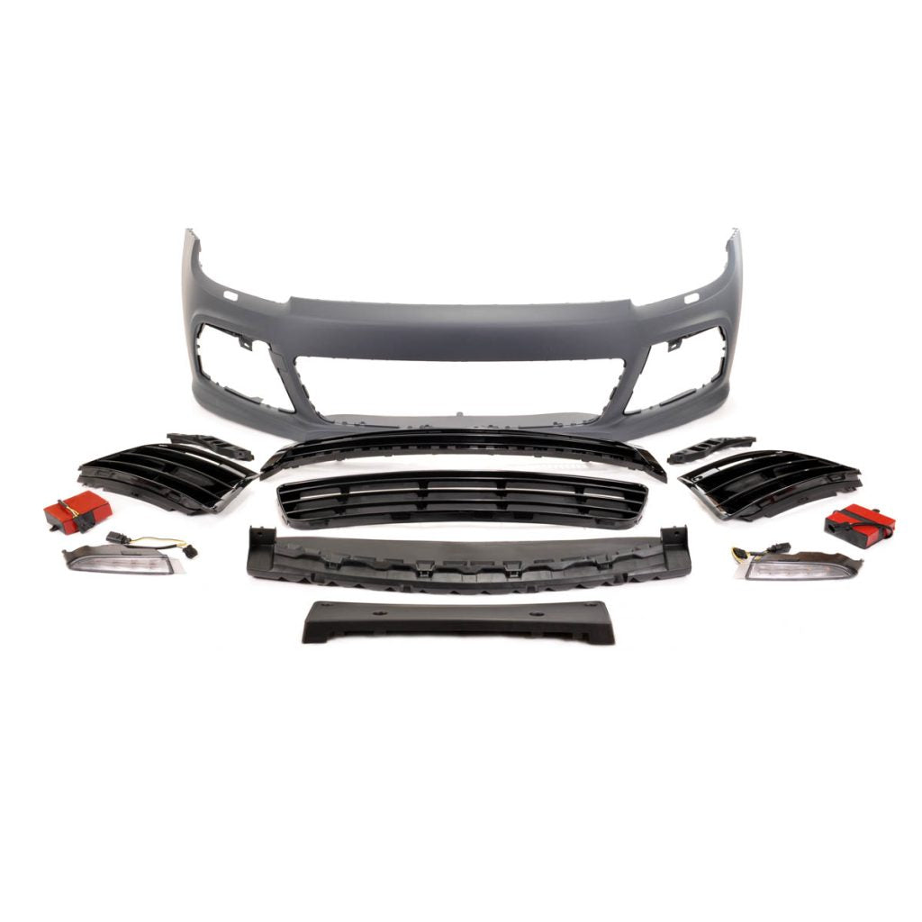 Paraurti anteriore compatibile con Volkswagen Golf 7 (2012-2016), perfetto per sostituzioni o per un restyling sportivo. Realizzato in plastica ABS resistente, garantisce un'ottima qualità e vestibilità con i fissaggi originali del veicolo.