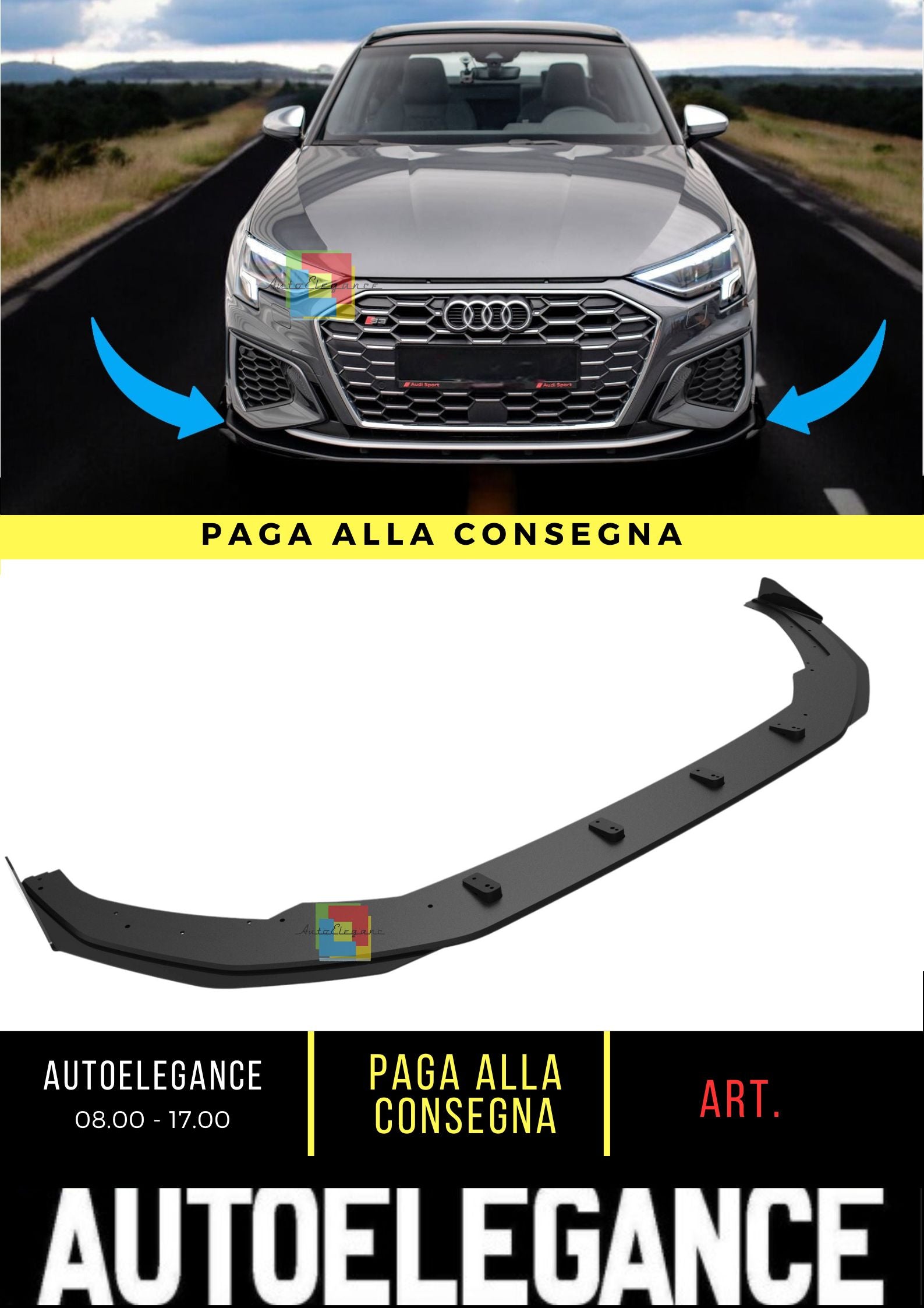 🤩Splitter Anteriore Street Pro + Alette Adatto Per Audi S3 / A3 S-Line 8Y🤩